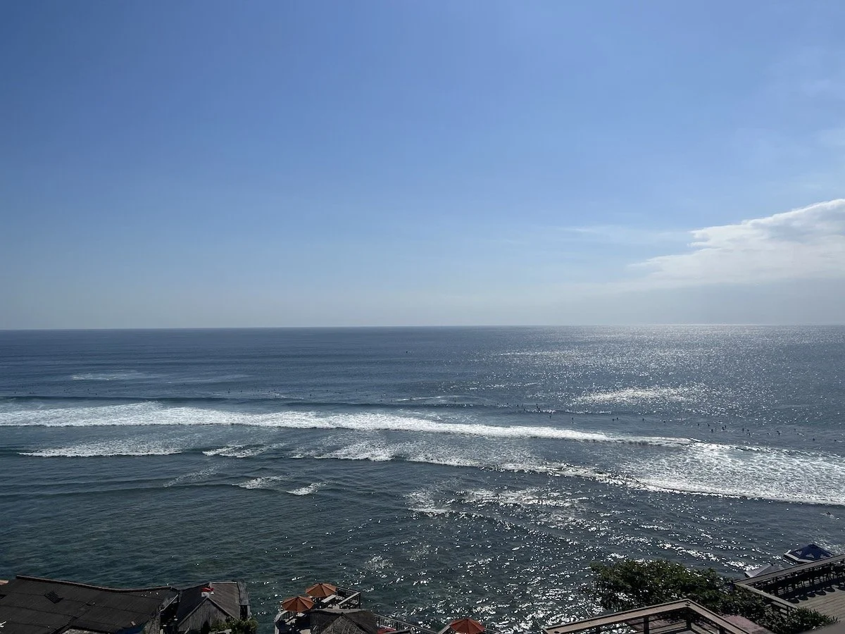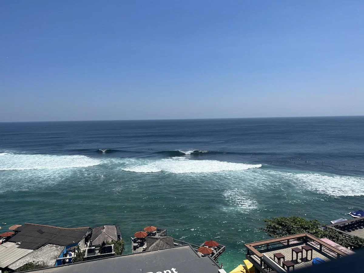 The beach got more and more crowded as the tide rose higher and higher, inching ever closer toward my towel. Sadly, I only got one perfect swim in before I had to relocate to a new spot, this one unprotected from the sun. Soon, I made moves to Single Fin, the cliffside surfer hang above Suluban Beach that both my instructor and Max had recommended and spent the afternoon there ordering things one by one so I could perch on my barstool overlooking the massive swells for hours on end.