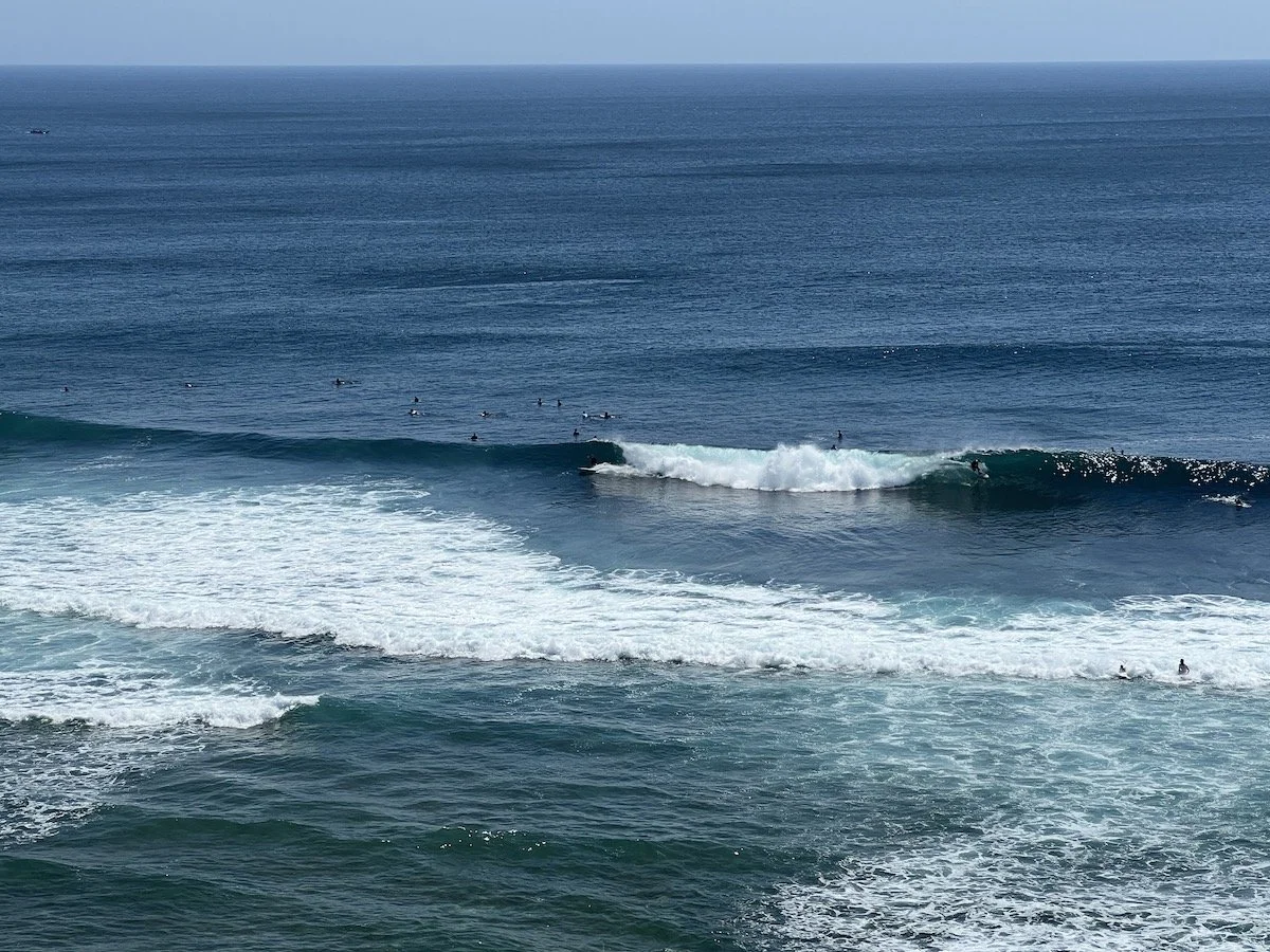 Surfers, like lines of black ants to abandoned fruit, followed one another out from shore and across the series of challenging breaks in search of a long wave amid the churn and foam of the white backwash. Am I getting too poetic? In summation: it was really stunning and meditative to watch. I think I’m addicted.