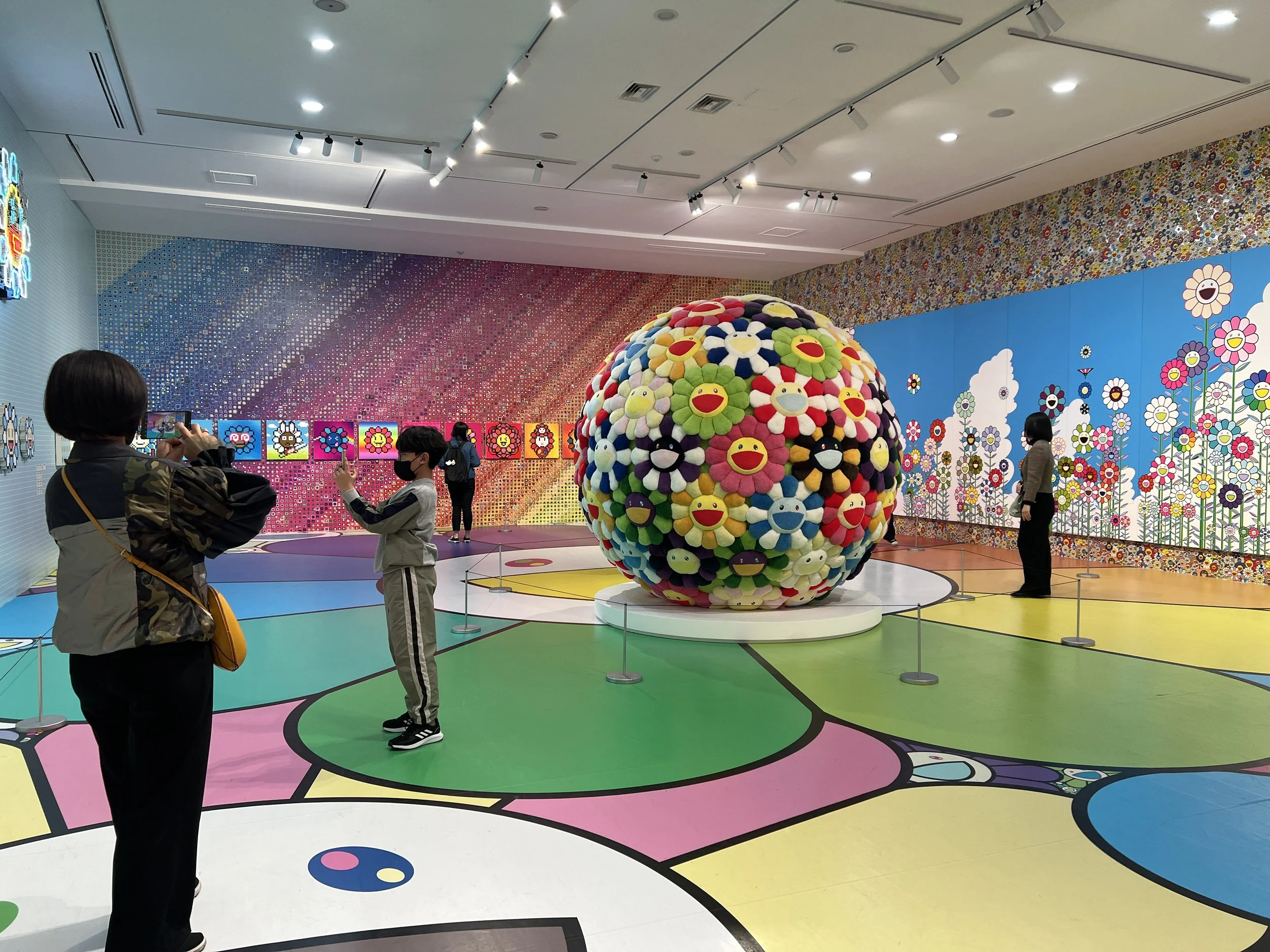 I browsed the two exhibitions on display—one called, “My Young & Sad Days” that combined a series of paintings, sculptures, and video pieces by three different artists, focused on work inspired by recent tragedies—the pandemic, recession, and the Halloween crowd crush. The second showed off the flowery anime rainbow acid trip that is the work by Takahashi Murakami’s studio, a strange and jarring contrast.