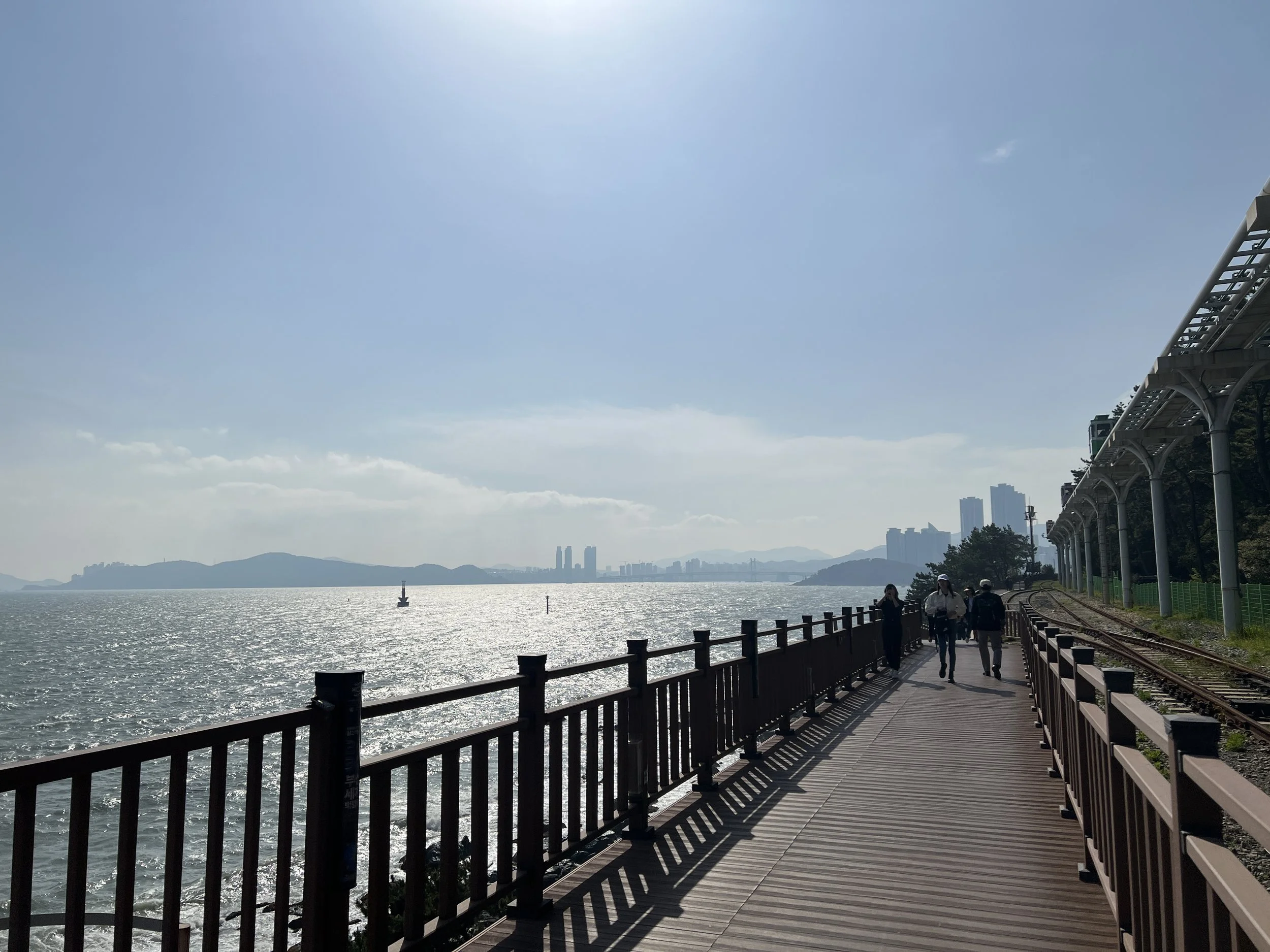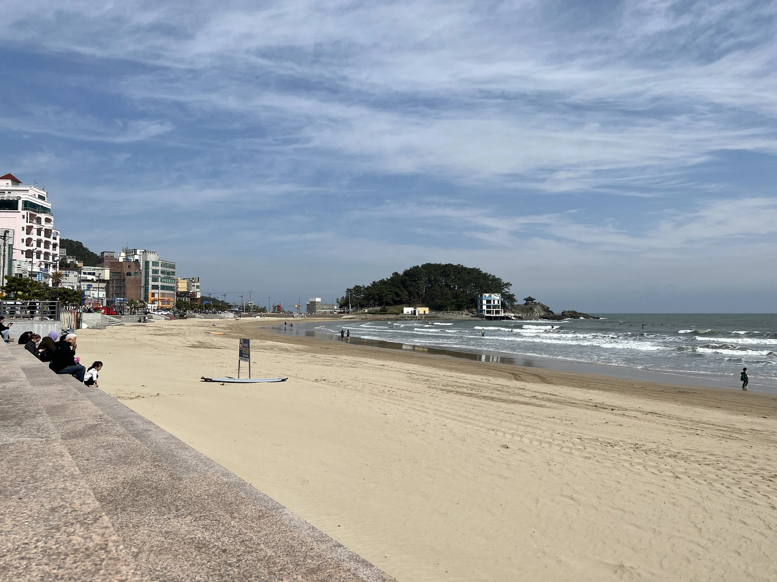When I reached the Blue Line, I took the Beach Train to Songjeong, Busan’s other popular beach and surf spot. The zany prerecorded narrator pointed out sites such as the “flamboyant cafes where you can make good memories” and the spot on the beach where a North Korean submarine sneakily landed a few decades back. Once we arrived at the end of the line, I watched the surfers drift along the waves waiting for breaks that never came, then decided to walk the two-ish hours back to the hotel along the coastline. The city provided a well-maintained boardwalk for exactly this purpose, and I never lost sight of the ocean the entire time.
