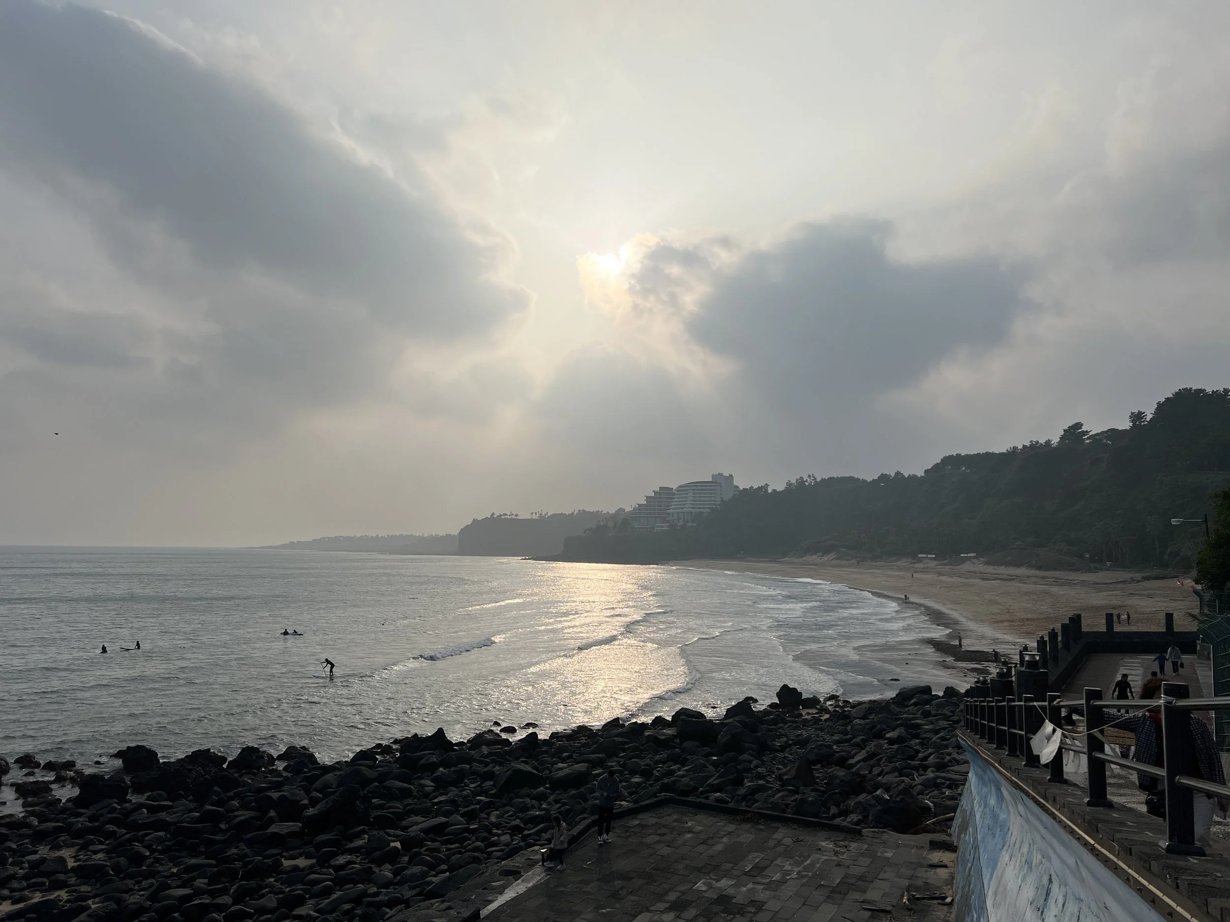 When we finally arrived at Seaes, I wanted to collapse. But first, I had to procure food for later. I wandered through the lush, tropical landscaping of the resort and across a small bridge to the beach and watched the surfers for a few minutes before walking back to the GS 25, my favorite Korean convenience store chain. I left with the essentials: instant noodles, honey sesame crackers, and a strange corn-flavored puffy, crunchy snack I hadn’t tried before. By the time I got back, it was nearly dark. I ate, then watched the somewhat unsatisfying last episode of my dear Hospital Playlist. Then bed.