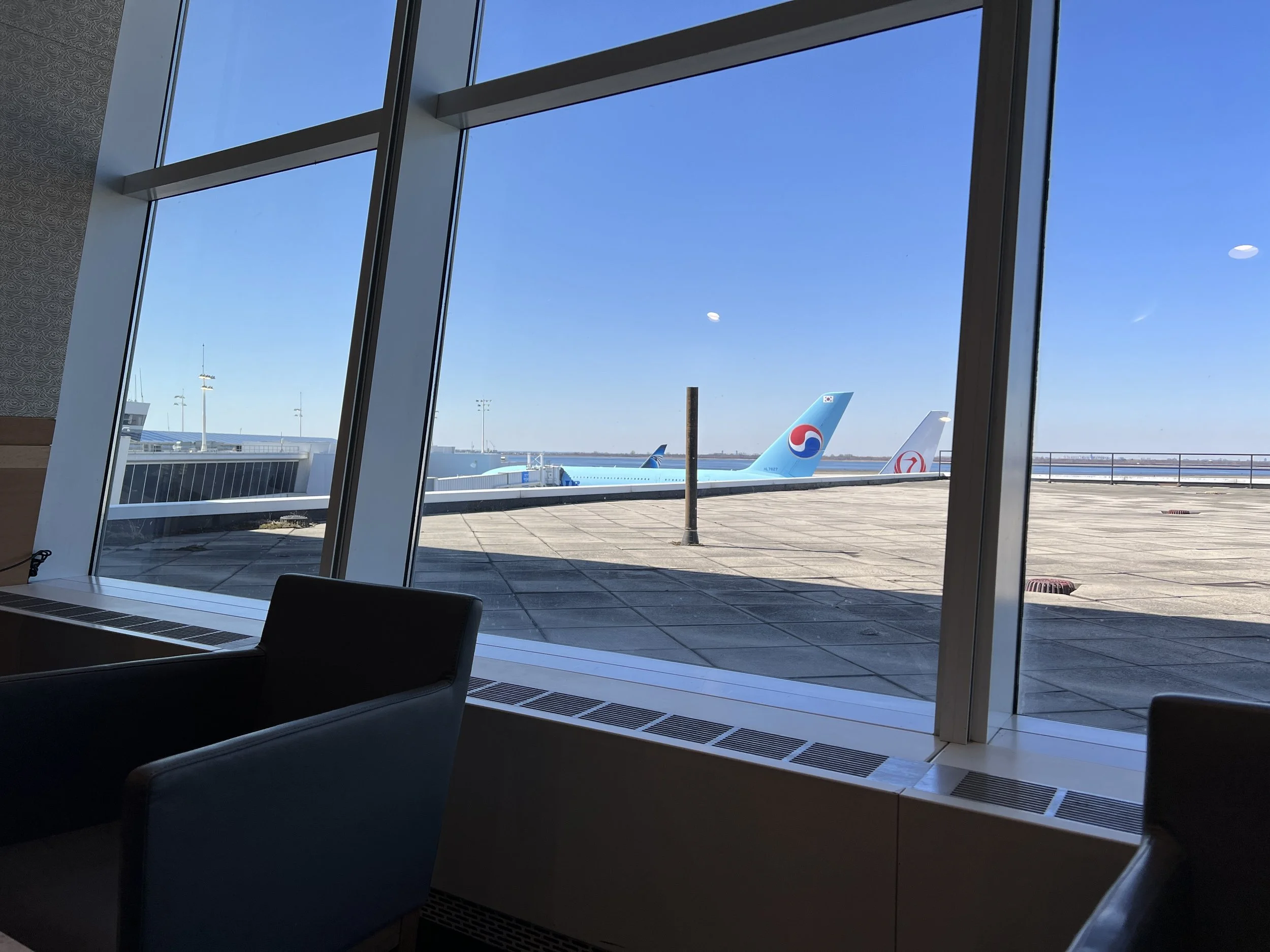 I love traveling on a Wednesday. The roads are emptier, the airports easier to navigate. And Korean Air offers a 1:35 p.m. flight that lets you sleep a reasonable amount of time before flying the 15 hours (direct) from JFK to Seoul. All was smooth sailing this morning. I even experienced my first JFK lounge—nothing fancy, but I could sit gazing out at my baby blue plane until my anxiety insisted I go to the gate.
