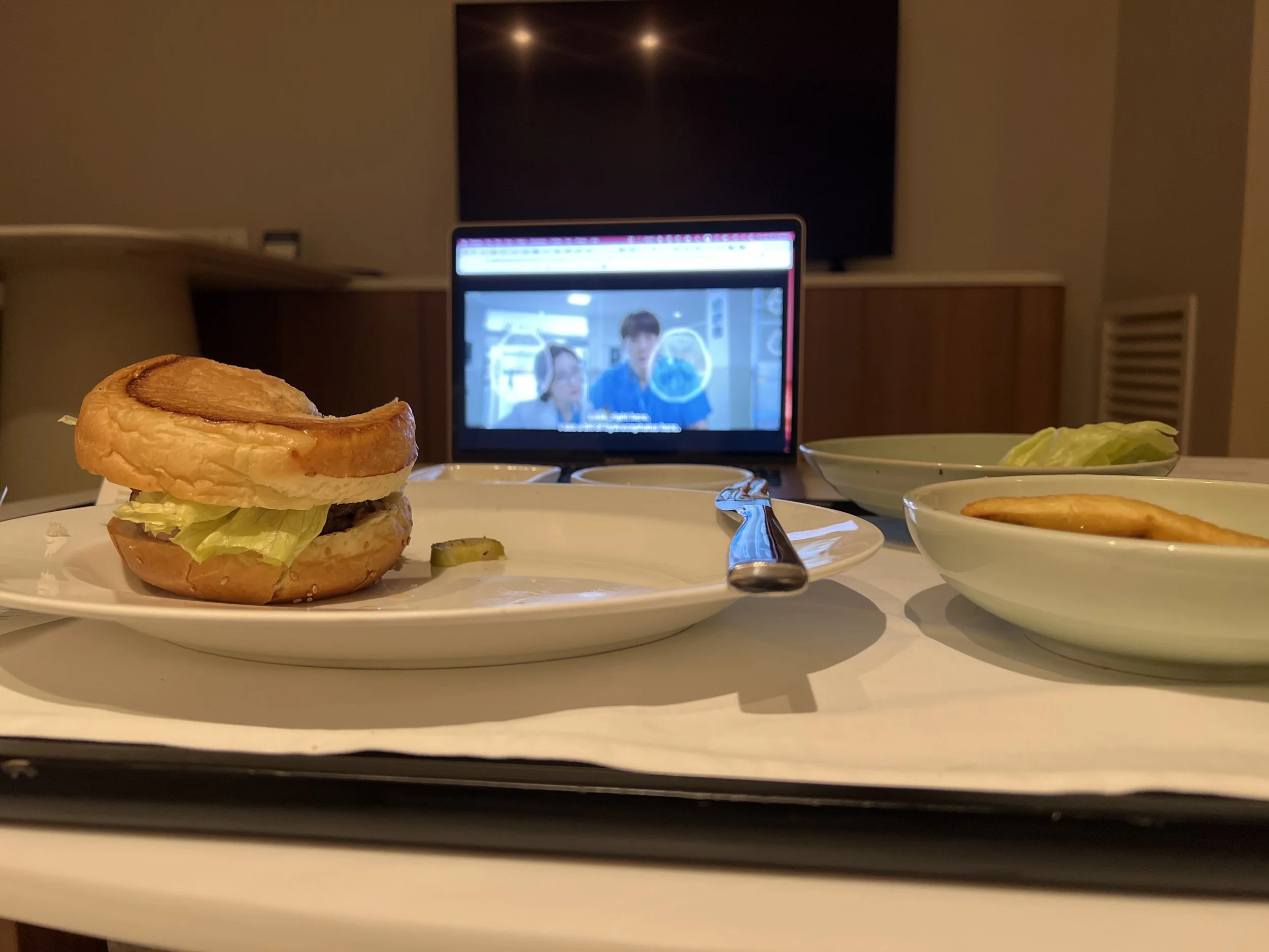 As some of you know, I don’t mind a 15-hour flight; you can really settle in, do all the liminal-space activities us introverted indoor kids love: book reading, TV watching, music and podcast listening. Ideal, really, if not for the knee-bending and poorly timed period cramps. But a foil-wrapped cheese-filled hot pocket made a perfect heating pad in a pinch.