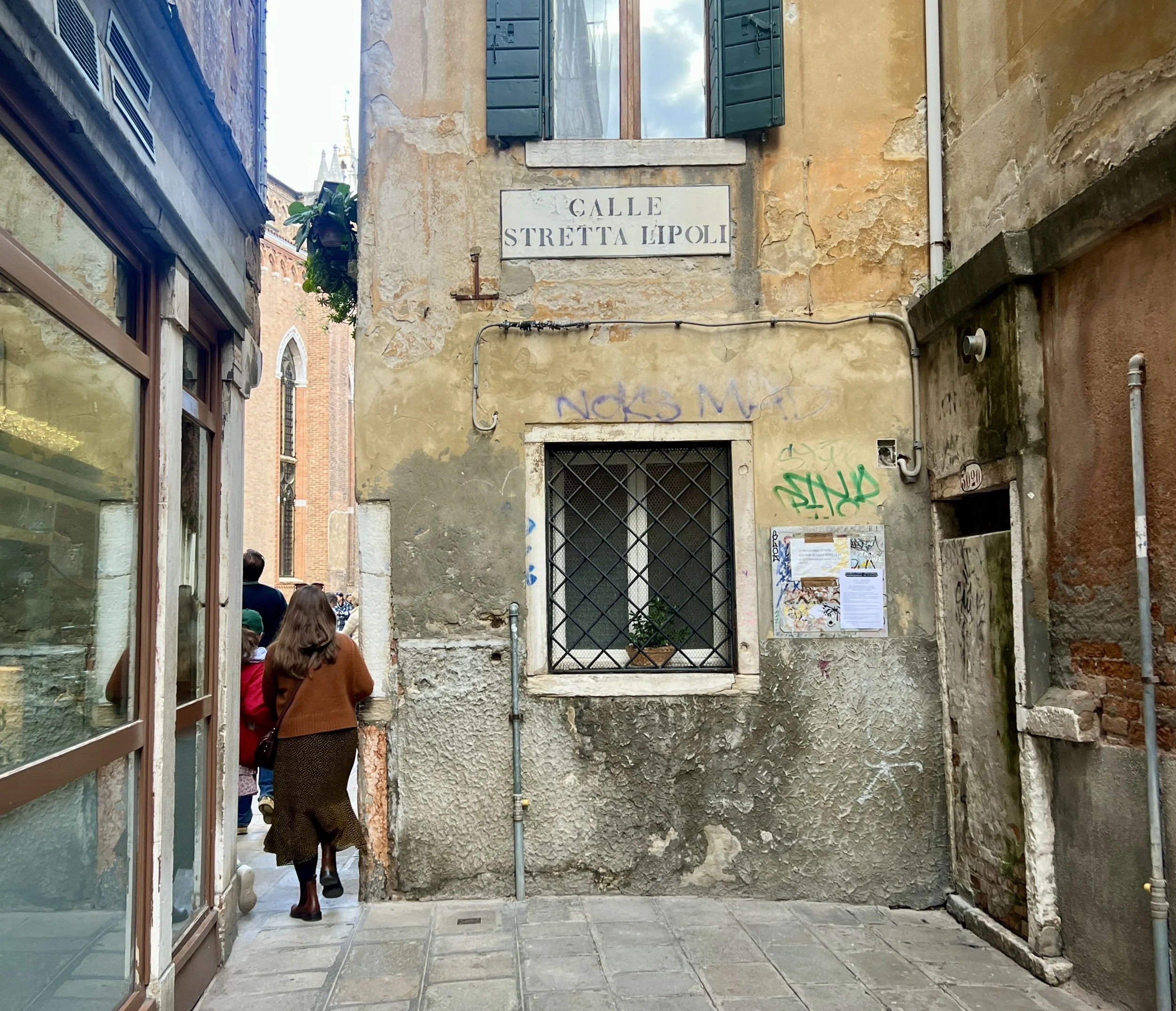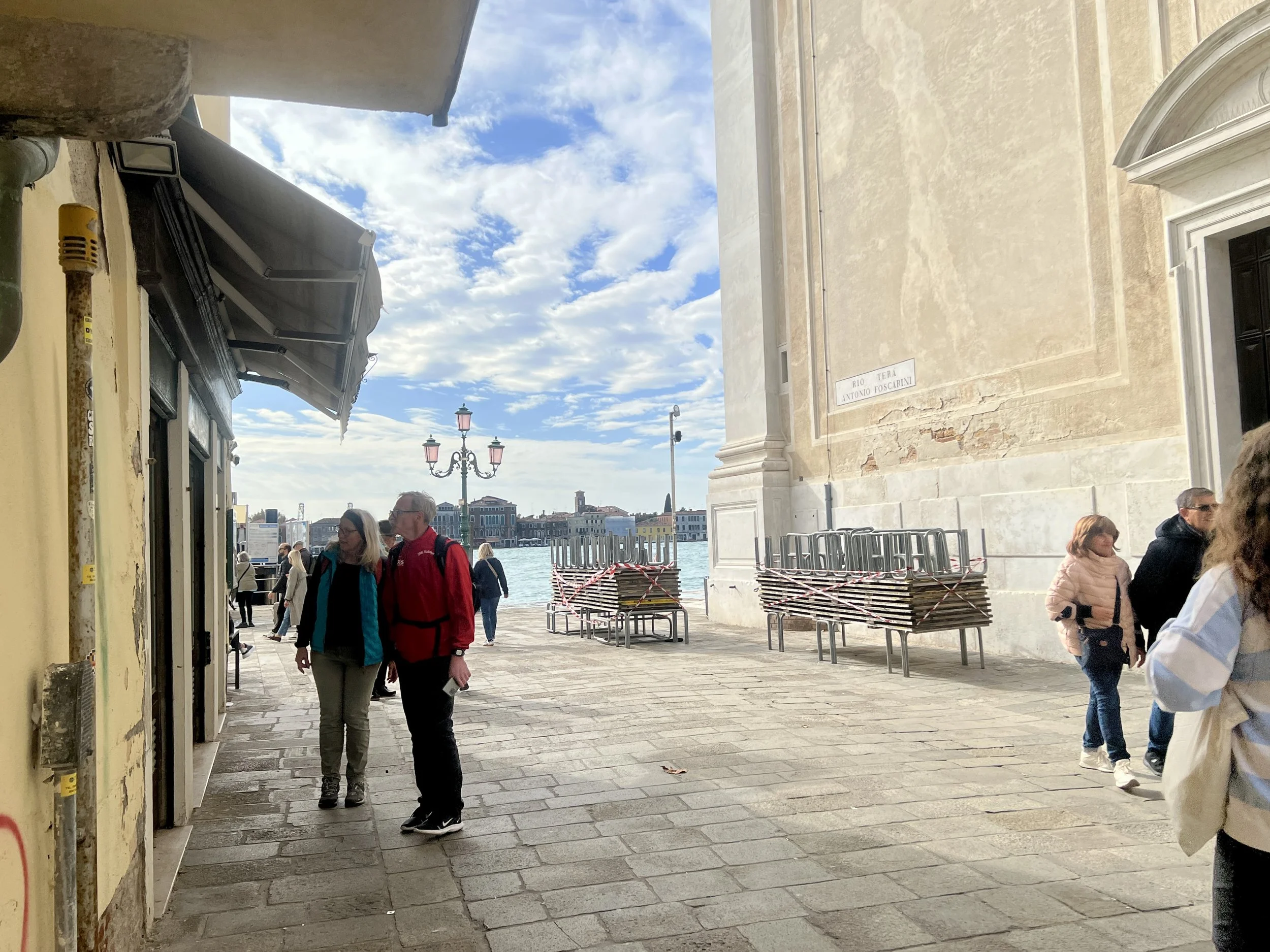 The eight-hour flight from New York to Venice had been long; I’d failed to sleep—in part, because the old man across the aisle from me caused continual disturbances, to the point that the lead flight attendant threatened arrest. He wouldn’t stay in his seat and responded aggressively when they tried to enforce the rules. He tormented the women sitting in front of him and his wife, at one point snapping something (a book?) shut directly behind their ears. At this, the younger of the women abandoned her seat for a new one in another part of the plane. Upon landing, we were asked to wait before standing to collect our luggage. Two politzia arrived to escort the man off the plane. The drama!