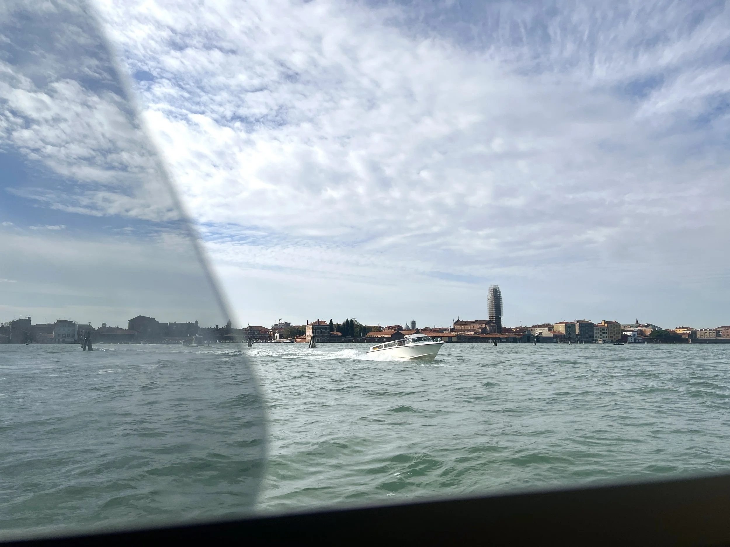 Sleep-deprived, I grew easily aggravated by the English couple behind me on the boat, who spoke incessantly for nearly an hour. “Murano, that’s Murano. Yep, that’s Murano,” the man said repeatedly while his female companion took vertical video out the small window. Otherwise, the voyage was long, but pleasant as the boat cruised around the east side of Venice, eventually dropping me at Zaterre, a stop on the south only a few minutes’ walk from my hotel.