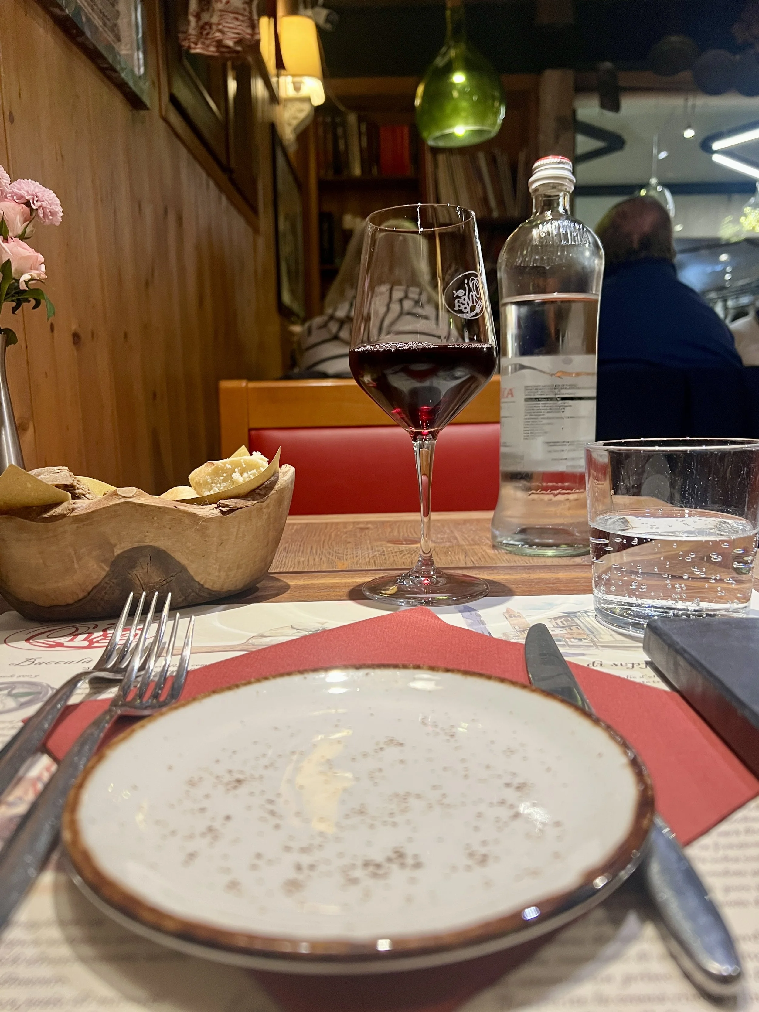 Soul suitably doused in art, I stopped at a nearby caffe to write before walking back into Dorsoduro for dinner at a cozy and decidedly not trendy spot called Oniga. An animated Italian woman served me spaghetti con ragu and a glass of house pinot nero, then I followed the trail of people back toward my hotel, and called it a night.