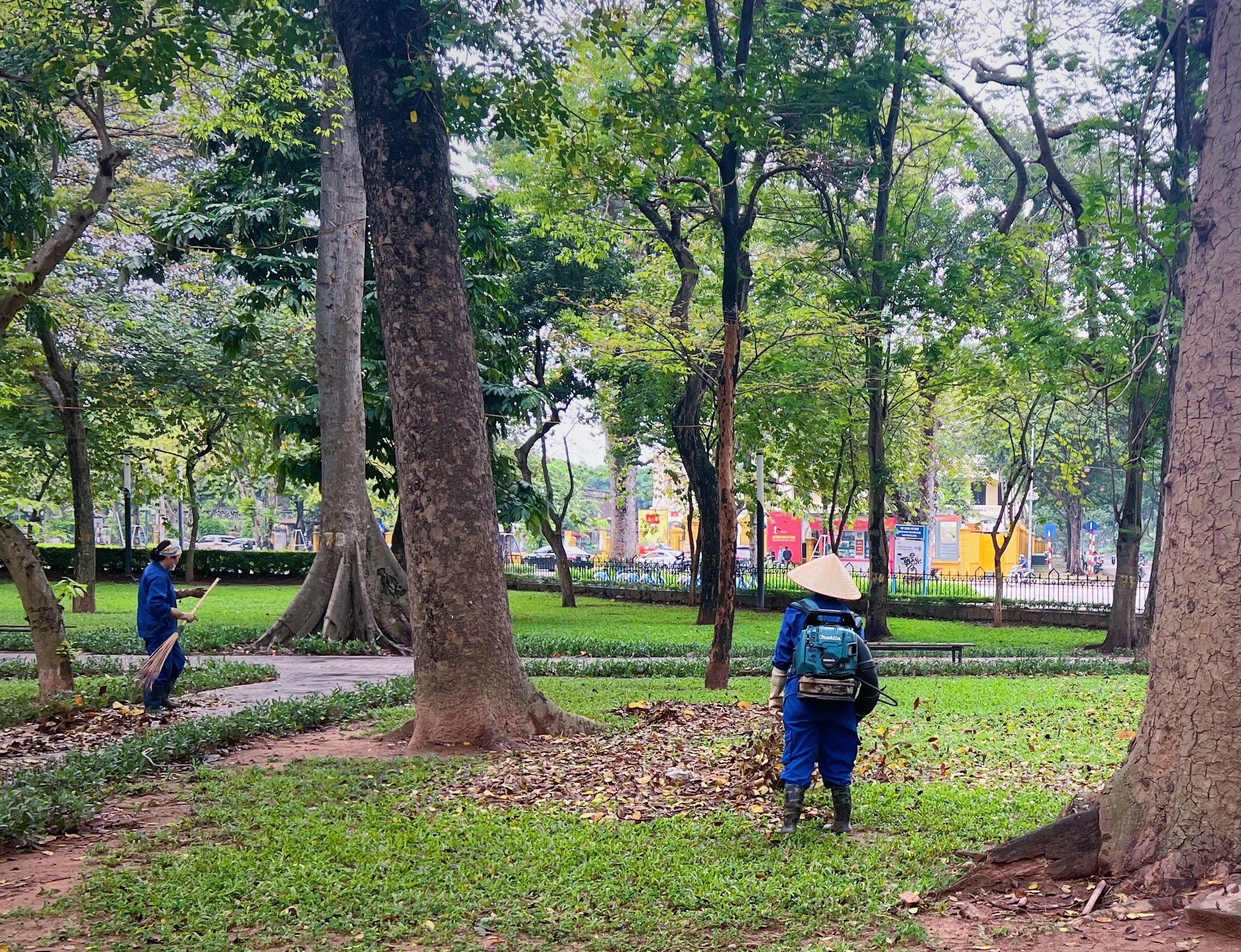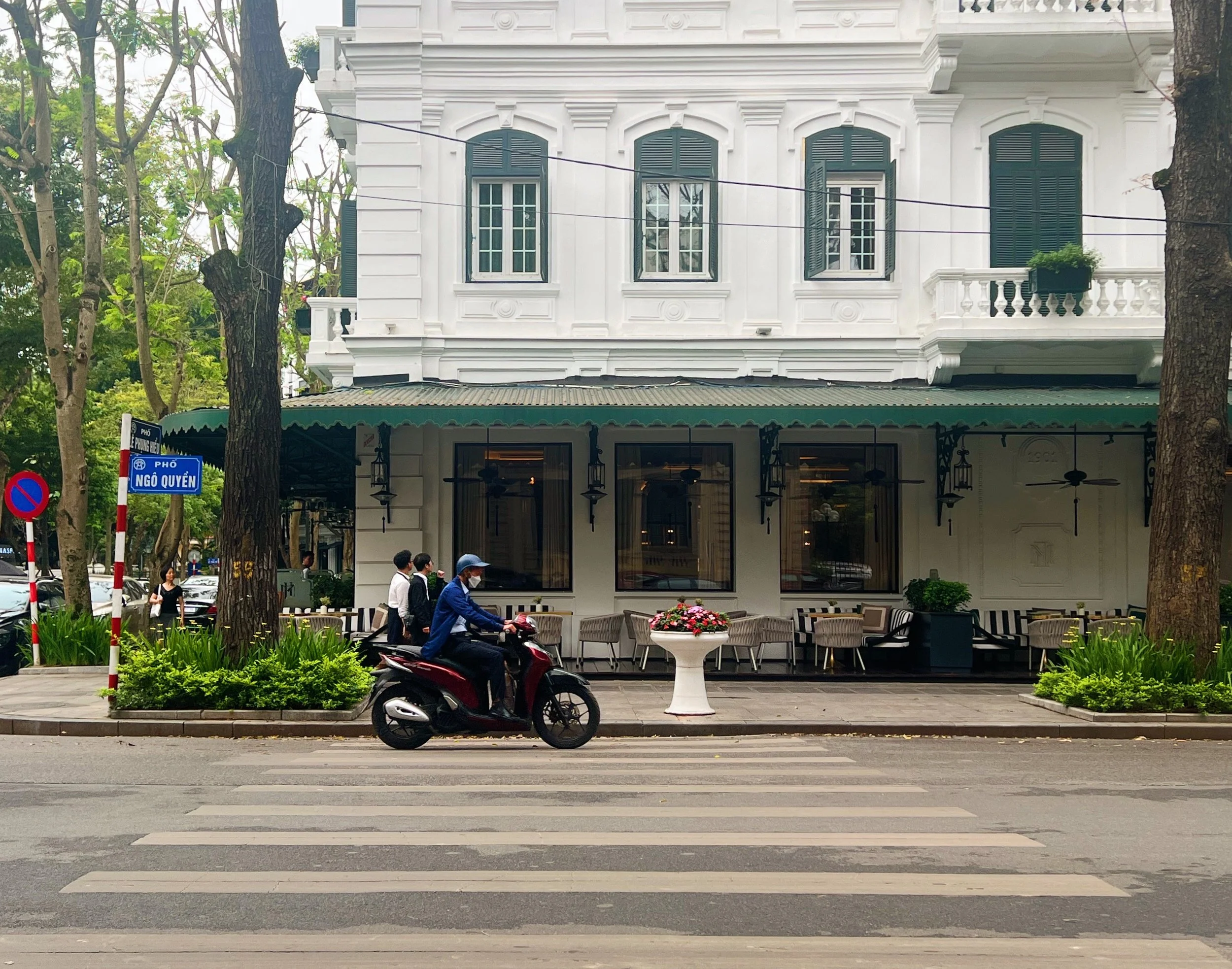 In between, I started walking in the direction of the Vincom Contemporary Art Center, but after forty-five minutes of increasingly scant sidewalk and too many blind alleys with scooters bursting through them, I decided: these streets were not meant for pedestrians. I turned onto a calmer street and walked perpendicularly toward another larger lake that I’d seen on the map, then back up toward the French Quarter.