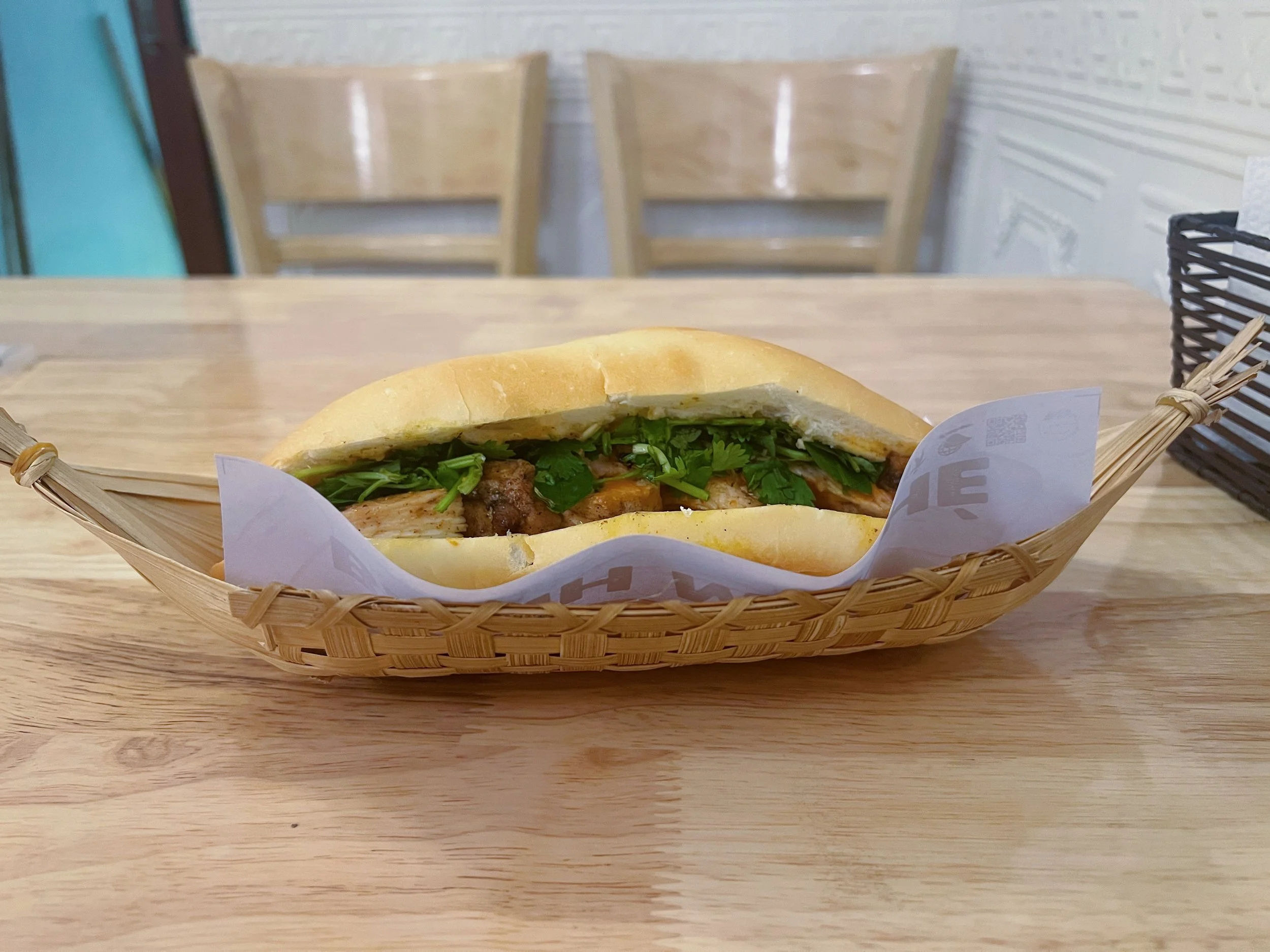 From Tenement, I walked to a banh mi spot I’d bookmarked, Rural Tonkin, a place you’d never notice unless you were looking for it specifically. Up a set of stairs and into a tiny narrow room I went. A couple speaking a language I didn’t recognize sat at the nice table up front in the window overlooking the street, leaving me the back table in the windowless area next to the kitchen where the sole proprietor, a kind woman with thick glasses, toiled away on her sandwiches as carefully as if they were works of art.