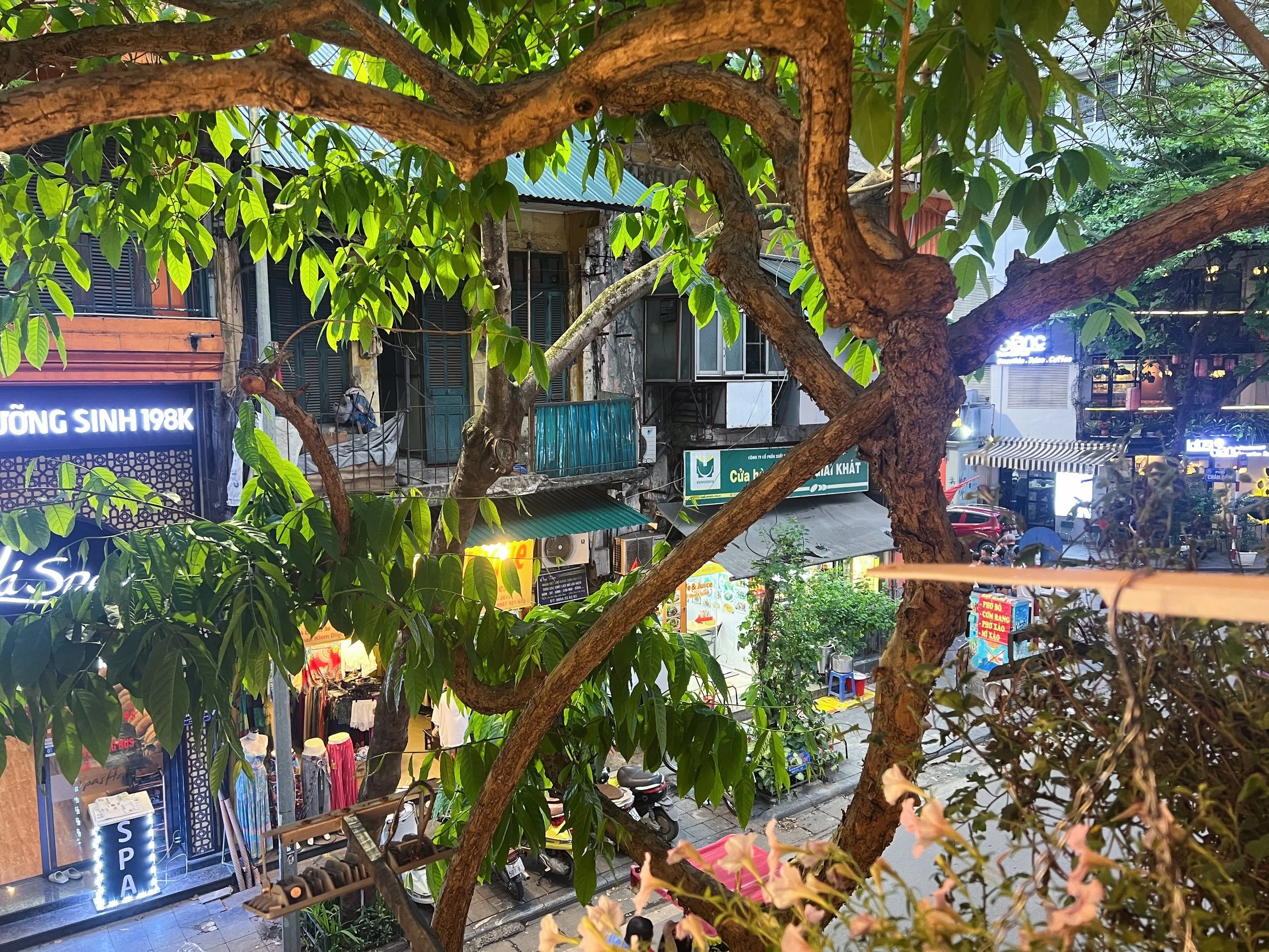 En route back to my familiar streets, I searched for a pleasant-looking cafe to sit at and almost too easily, I found a dreamy spot with a balcony set in the treetops, lit by warm glowing lights. The sun was setting, the storefronts illuminating, and I enjoyed it all from my perch, people-watching without inhibition and imbibing more caffeine than is probably wise. But I fear the lag.